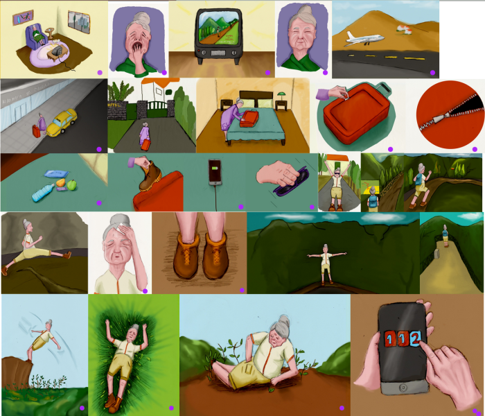 Storyboard Published March 21, 2015 at 700 × 600 in Levada Story (2014) ← Previous Next → Drawing and painting by Sandra Olim, Images with a purple dot were painted by Paulo Bala